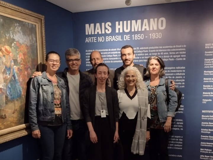 Inicialmente a mediadora realizou conversa inicial sobre a exposição, com visita às obras, em seus diferentes espaços, abordagem sobre como acontece a exposição, a escolha das obras, a montagem e curadoria.