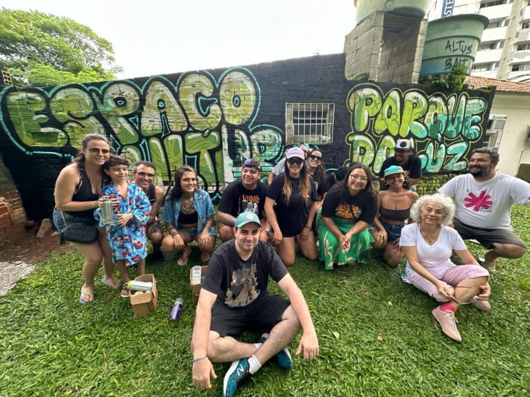 Foi uma Vivência para todas as idades, com a pintura coletiva no muro da Sede do Parque da Luz.