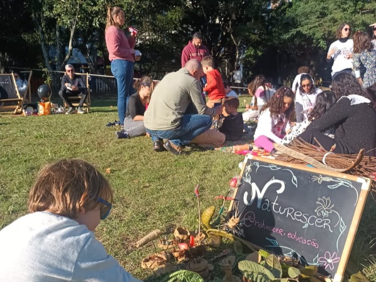 Numa manhã de sábado de outono, com uma forte neblina seguida de sol, cerca de 45 pessoas se reuniram no parque para um momento cheio de alegria, conduzido pelo projeto Naturescer.