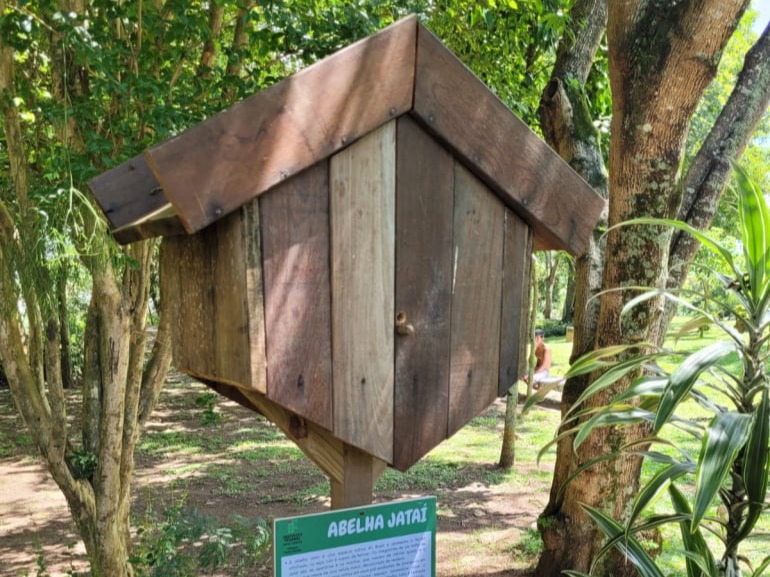 É o incremento de mais uma colmeia de Jataí para ampliar a presença das nossas abelhas nativas no ambiente do Parque.
