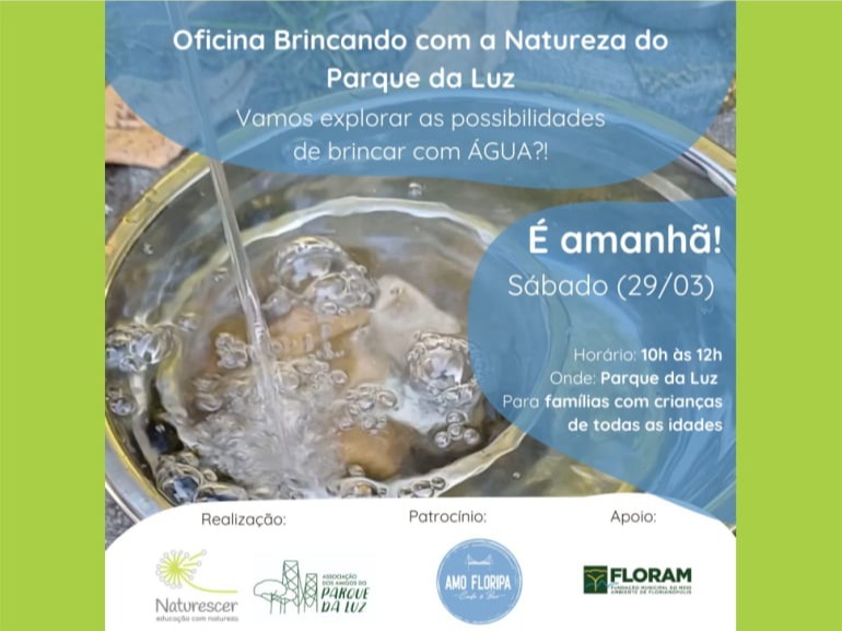 Neste sábado, 29.03.2025 Venham passar uma manhã divertida, experimentando, descobrindo com os elementos da natureza do Parque da Luz e com a água!
