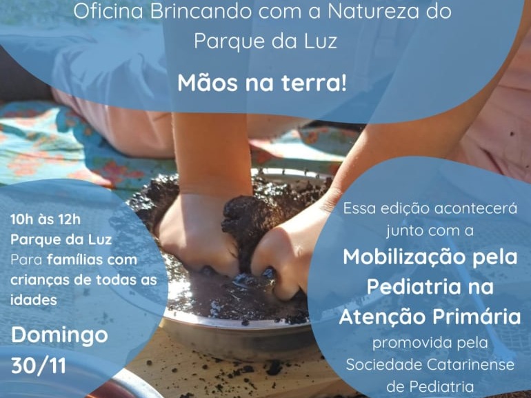 Neste domingo o convite é para muitas mãozinhas brincarem e criarem com a terra e com a natureza do Parque da Luz! A última edição do ano do projeto Brincando com a Natureza vai acontecer junto com uma mobilização promovida pela Sociedade Catarinense de Pediatria, em defesa da presença do pediatra na atenção primária.