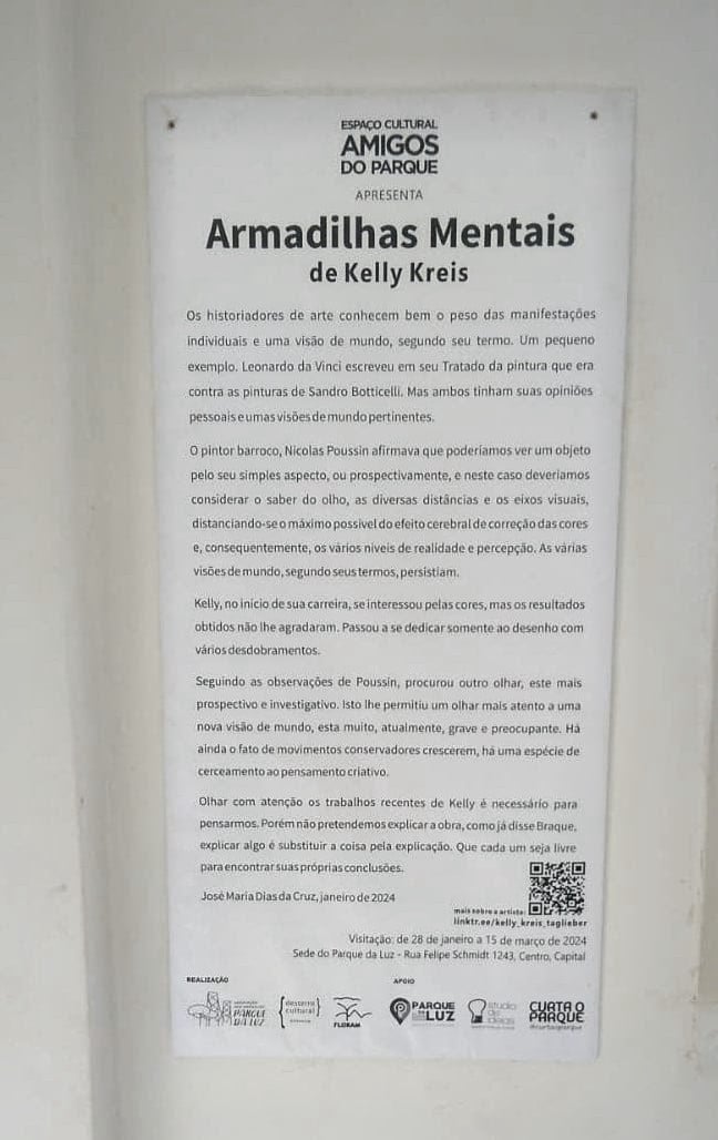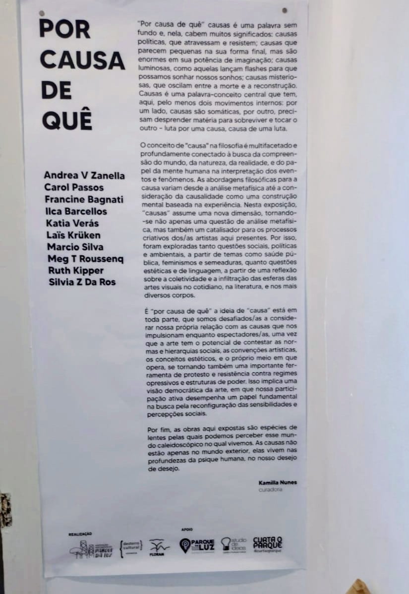 Histórias se cruzam. Caminhos que nos levam a essa exposição: um parque e uma artista, ligados pelo acaso do destino, conectados pelos elementos, em forma, luz e cor.