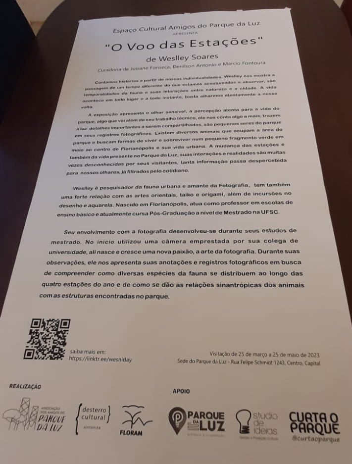 Durante décadas Miriam aperfeiçoou o olhar e ficou mais seletiva, primando pela excelência nos detalhes, o que percebemos nesse jogo de espelhos entre o tempo presente e passado retratados nesta exposição com algumas fotos destes últimos trinta anos que viveu ao lado do Parque da Luz, e que agora nos presenteia como um vislumbre do que devemos manter para preservar esse patrimônio público de cultura, lazer e ambiental, e sua importante posição estratégica como bastião definidor do paisagismo de resiliência na entrada e saída mais charmosa da Ilha.